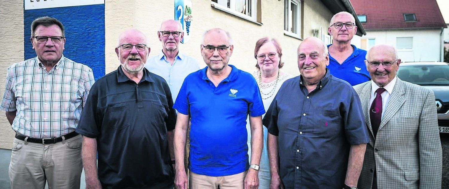 Der neue Vorstand v.l.n.r. Mathias Hertlein, Herbert Bangert, Ývonne Schmitt (Kassiererin), Monika Rettig, Karlheinz Kilian, Cordula Stein (Bibliothekarin, Ursula Beck, Karl-Heinz Bangert (Ehrenvorstand), Ingrid Sieb, Erhardt Schmitt (Organisator), Bernhard Wahl, Heinz Hannemann (2. Vorsitzender), Günter Landthaler